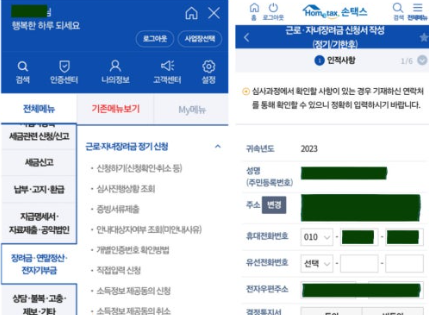 홈페이지 접속 후 안내에 따라 근로장려금 신청하시기 바랍니다.