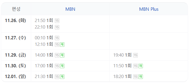 다음은 1회 차 현역가왕2 다시보기 시간표입니다.